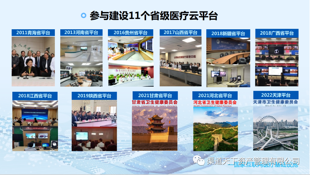 目前已建成覆盖31个省,联结2万余家医疗机构的智能医疗云平台,助力建设并服务青海、河南、陕西、山西、贵州、新疆、江西、广西、甘肃9大省级远程医疗平台,服务通达80%三甲级医院;成功建设并服务300余个省、市、县及专科医联体。